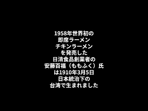 世界初の即席ラーメンチキンラーメンを発売した日清食品創業者の安藤百福(ももふく)氏の一生